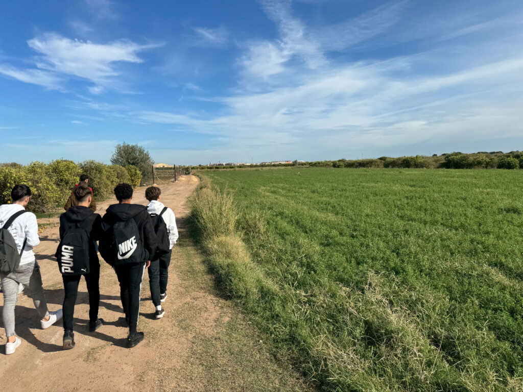 Pour l’instant, nous avons fait quelques explorations, mais nous avons parlé en classe de tout ce que nous voulons encore étudier : le train qui traverse les vergers, l’irrigation avec des fossés et la Sèquia Royale de Montcada, qui a son origine à l’époque des Arabes ; nous voulons parler à l’homme qui n’était pas là pour qu’il nous raconte son quotidien ; nous voulons aussi explorer le contraste entre la ville et les vergers et comment leurs limites se mélangent, nous sommes très intéressés par la faune que l’on trouve dans le verger et aussi voir comment il y a aussi une végétation « sauvage » qui ne s’adapte pas aux formes rectilignes des champs…