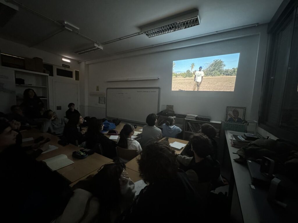 Une autre sortie très importante a été lorsque nous avons contacté Ousman, qui travaillait dans un champ très proche, et un groupe d’entre nous est resté une heure pour lui parler de ce qu’il fait dans le champ et de lui-même. Avant cela, nous avons fait quelques visionnages en classe qui pourraient nous servir d’inspiration pour incarner Ousman, comme l’extrait de D’Est de Chantal Akerman ou Innisfree de José Luis Guerin. Nous avons quitté le lycée à vélo à sa recherche, et même s’il a fallu du temps pour le retrouver, nous l’avons finalement fait. Il travaillait aux récoltes quand nous sommes arrivés mais il nous a accordé quelques minutes pour notre documentaire. Il était très sympathique et ouvert à répondre à toutes nos questions. Il nous a dit qu’il vivait à Valence mais qu’il venait du Sénégal, qu’il vivait en Espagne depuis trois ans et qu’il travaillait dans une entreprise. Nous lui avons demandé si nous pouvions faire un portrait filmé de lui et il a accepté sans problème. Nous avons noté tout ce qu’il nous disait, mais lorsque nous sommes retournés en classe et que nous l’avons expliqué à nos camarades, nous avons réalisé qu’il nous restait quelques questions à lui poser, nous voulions en savoir un peu plus sur son histoire, comment il en est arrivé là, d’un pays si lointain, et comment il voyait son avenir. Nous avons donc décidé de lui reparler bientôt.
