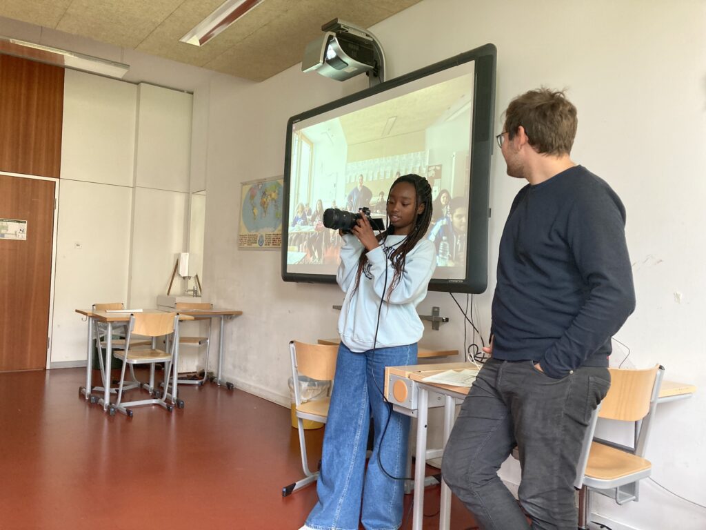 Every Tuesday we have 4 school hours time for the CCAJ project. The filmmaker Adrian Oeser is coming to our class every week to work with us.