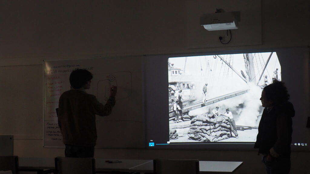 Vimos alguns planos Lumière e analisámos onde o realizador escolheu pôr a câmara, pensando sobre porque é que terá escolhido colocá-la ali: o que vemos? O que veríamos? Falamos sobre o enquadramento dos planos, o que escolhemos mostrar.